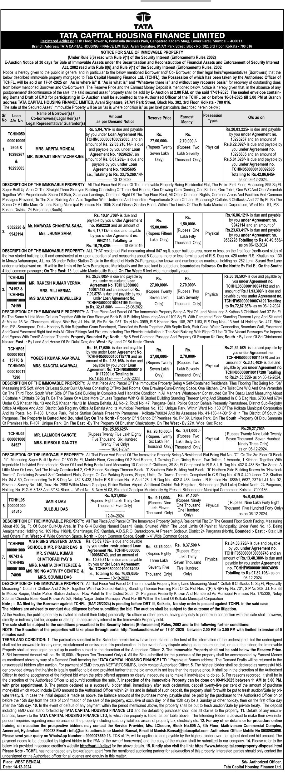 | Contact Details: | Contact The Authorized Officer:Manish Bansal :8588983696, 9999078669 |