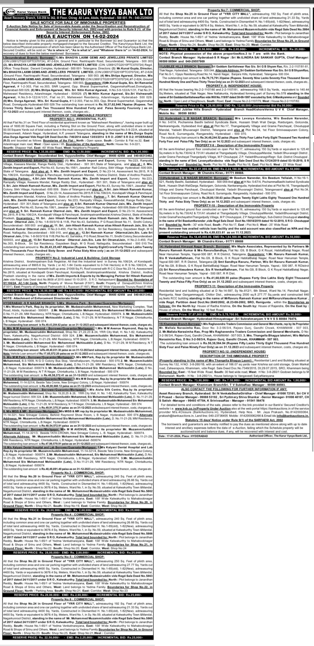 | Inspection Details: | For Inspection Details:- Contact The Authorized Officer: Smt. Vuyyuru Smitha Ph No:9848042958, 040-66313462 |