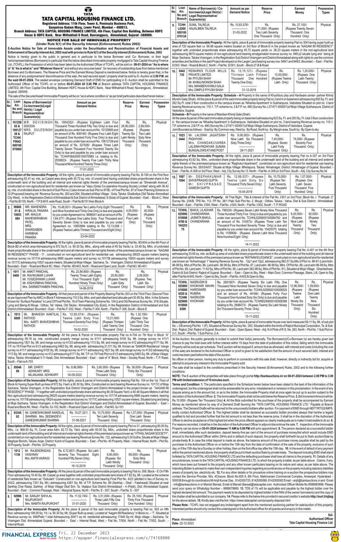 Contact Details: | Contact The Authorized Officer: Mr.Manish Bansal, Mobile No. 8588983696, Email Id: Manish.Bansal@tatacapital.com |
