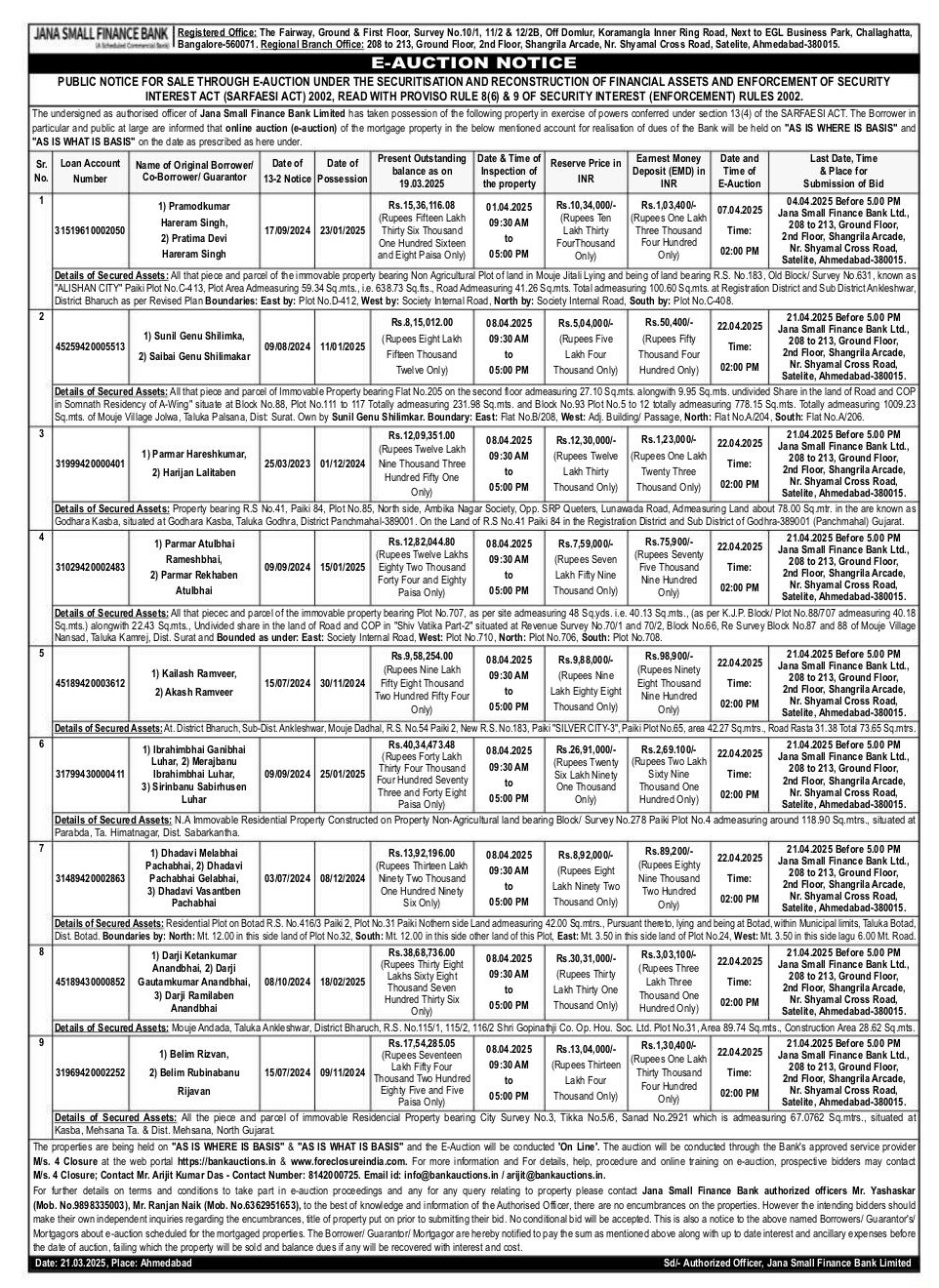 | End Date and Time of Auction: | 22-04-2025 3:00 pm |