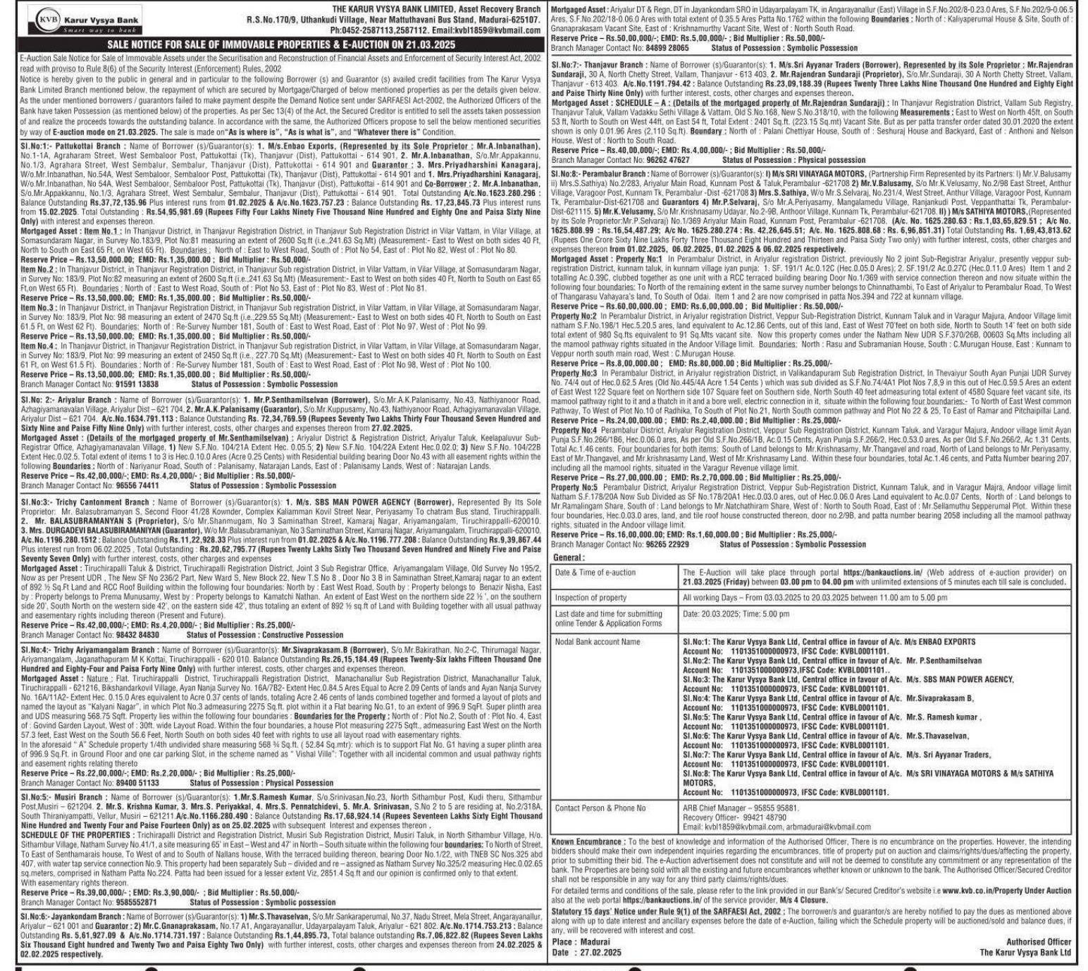| Contact Details: | Contact The Authorized Officer:9626522929, 9585595881, 9942148790Contact The Authorized Officer: 9585595881, 9942148790 |
