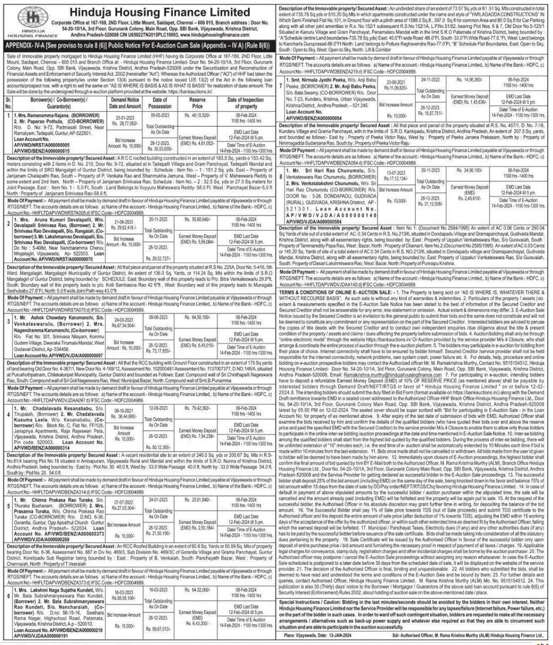 | Contact Details: | Contact The Authorized Officer: Mr M Ramakrishna Murthy 9515154512 |