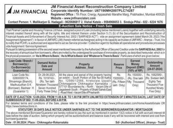 | Start Date and Time of Auction: | 12-09-2024 11:00 am |