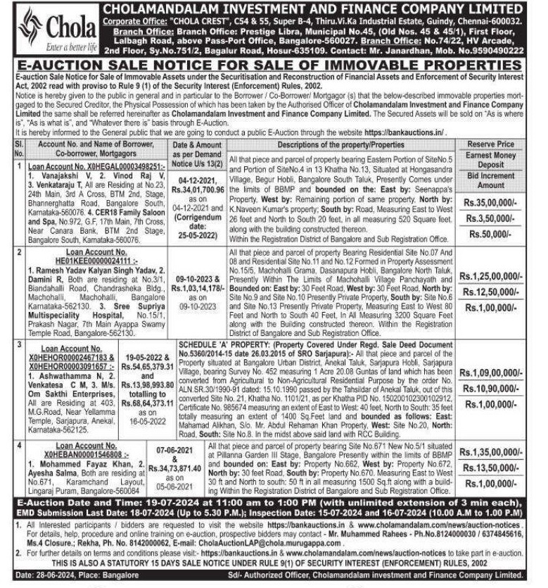 | Contact Details: | Contact The Authorized Officer Phno : Mr.Janardhan ; - 9590490222 |