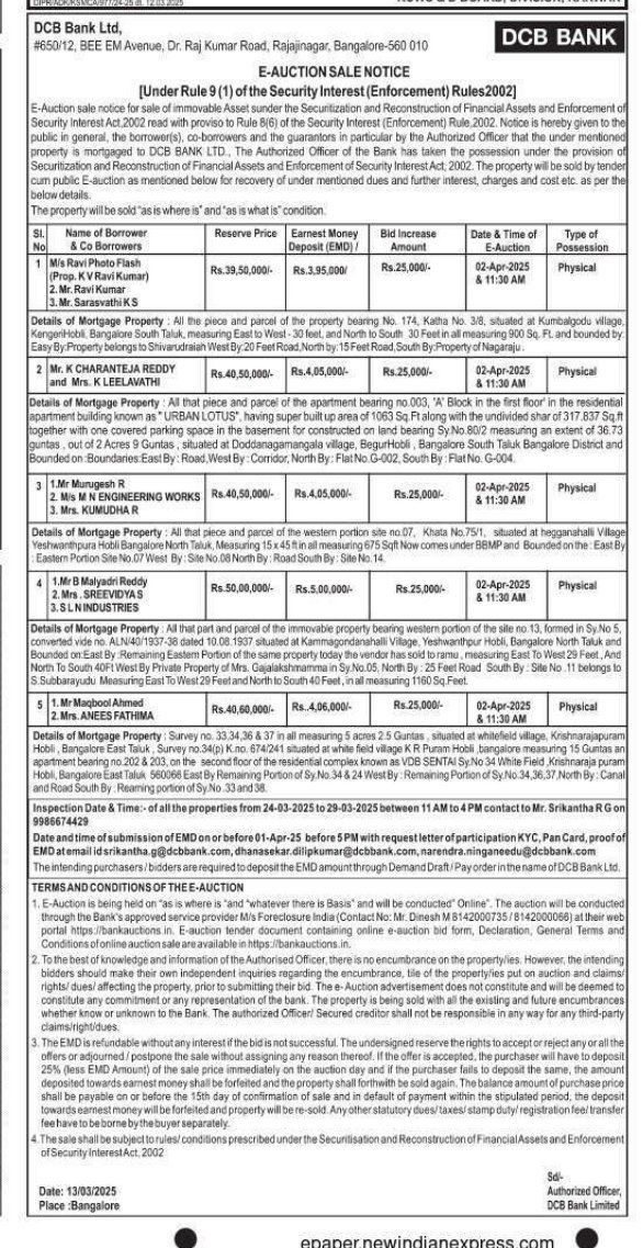 | Start Date and Time of Auction: | 02-04-2025 11:30 am |