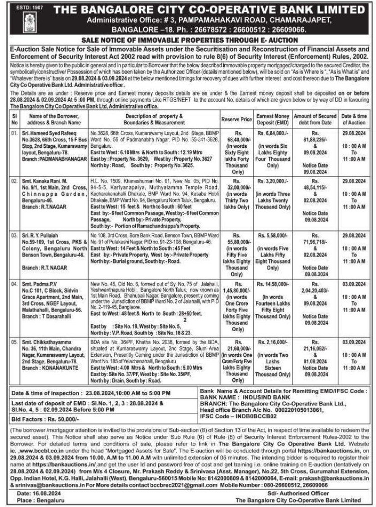 | Start Date and Time of Auction: | 03-09-2024 10:00 am |