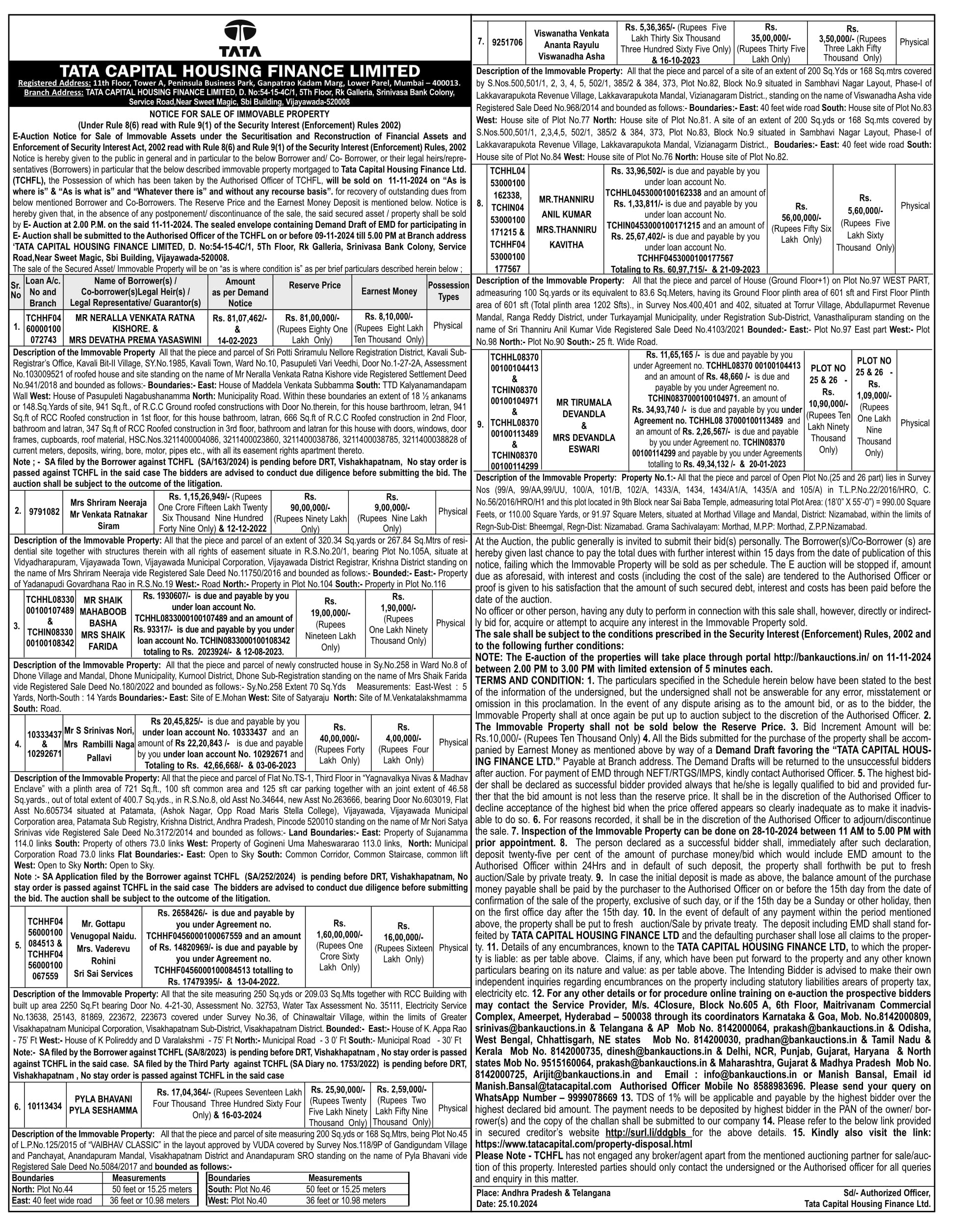 | Contact Details: | Contact The Authorized Officer : Manish Bansal, Email id Manish.Bansal@tatacapital.com , 8588983696 / 9999078669 |