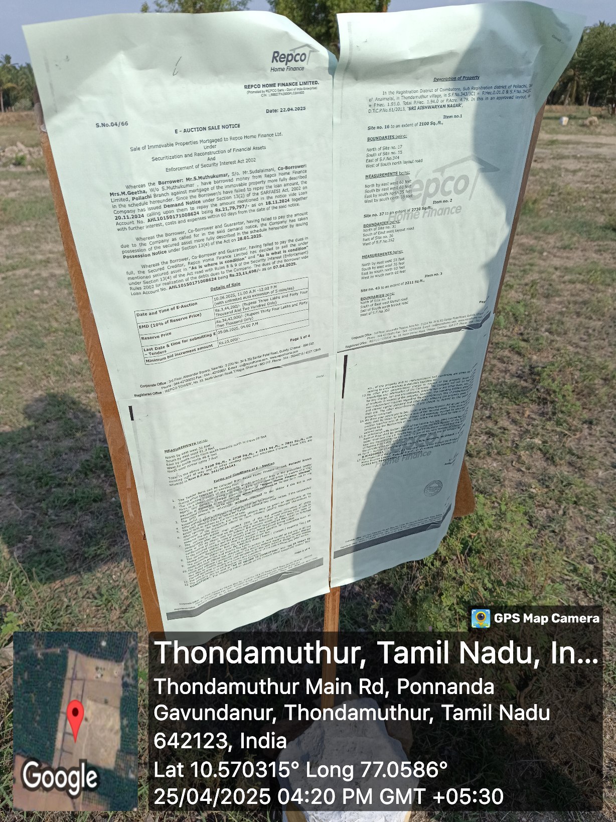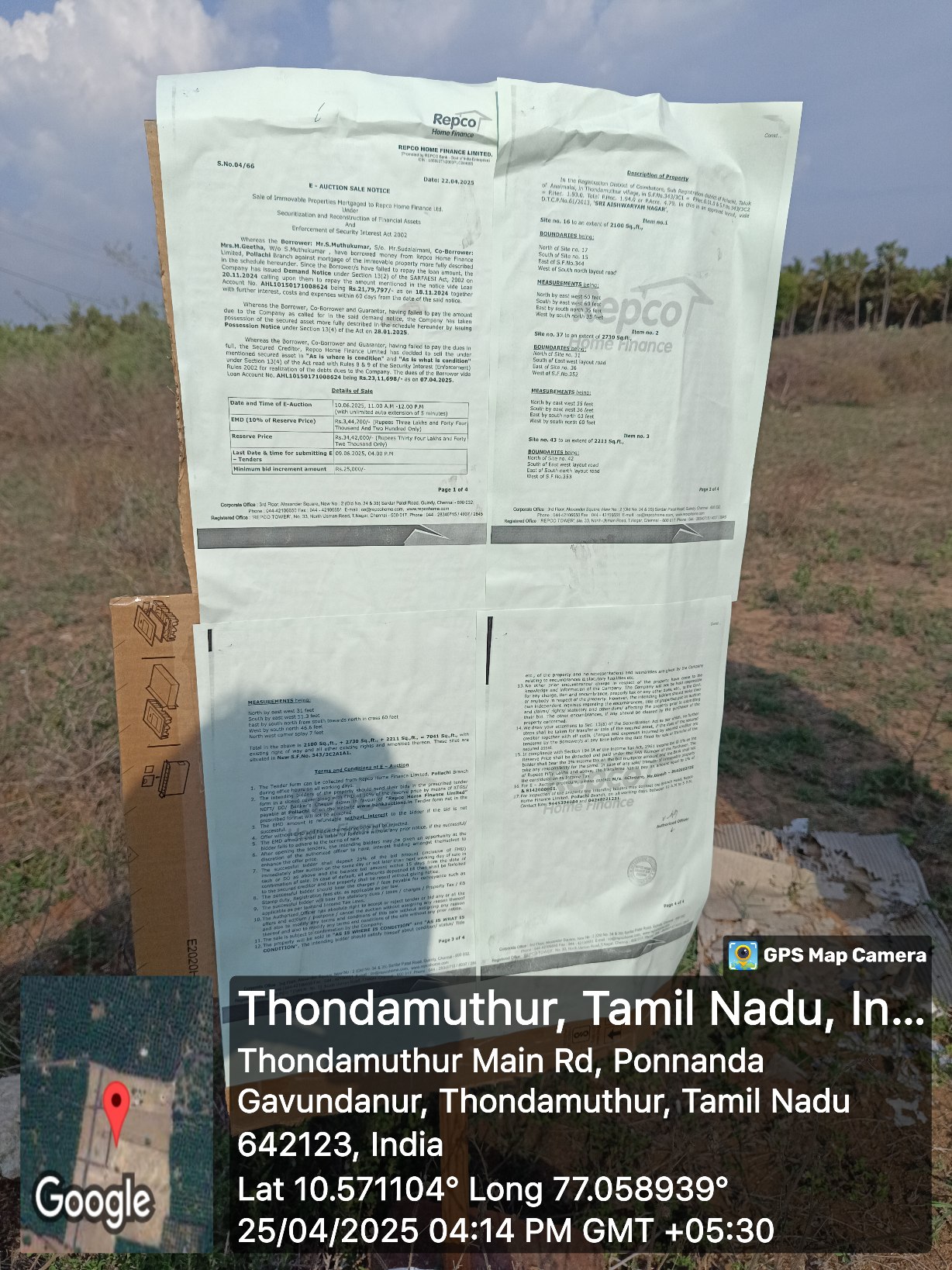 | Inspection Details: | Property Inspection Contact The Authorized Officer : 9445394084/ 04259221231 |